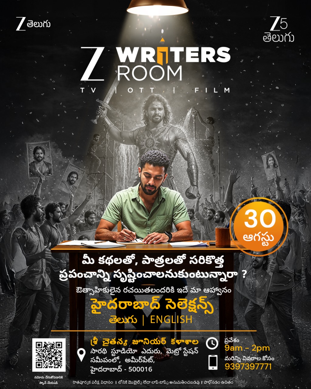 ఇక ZEE5 టీం న్యూ టాలెంట్ను ఎంకరేజ్ చేసేందుకు ముందుకు వచ్చింది. ఈ క్రమంలో ZEE రైటర్స్ రూం అంటూ ఆగస్ట్ 30న ఆడిషన్స్ నిర్వహిస్తున్నారు. ఓటీటీ, ఫిల్మ్, టీవీ ఇలా ఏ ఫ్లాట్ఫాంకి అయినా సరే కొత్త కొత్త కథల్ని అందించాలని అనుకునే వారికి ZEE5 టీం అవకాశం కల్పిస్తోంది. ఇండస్ట్రీలోకి రావాలని అనుకునే వారికి, తమ కథల్ని ప్రపంచానికి చాటిచెప్పాలని అనుకునే కొత్త వారికి ZEE సంస్థ సదావకాశాన్ని కల్పిస్తోంది.